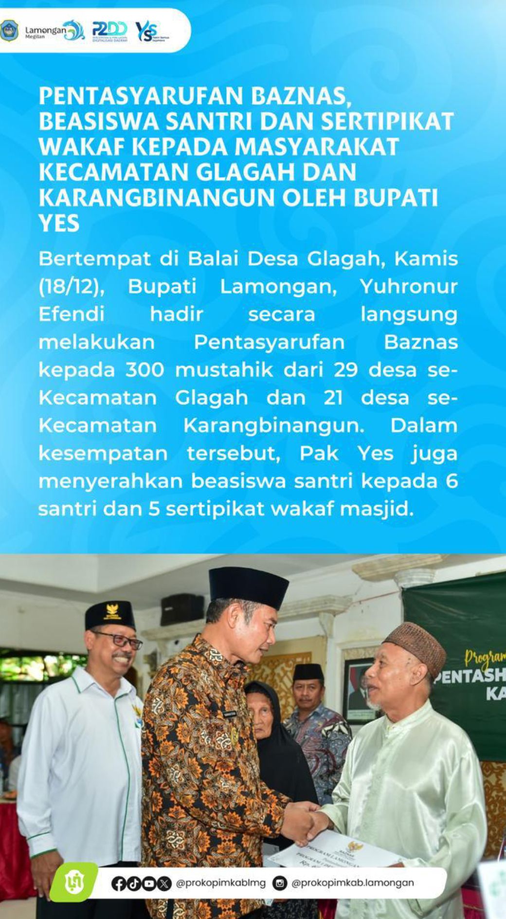 PENTASYARUFAN BAZNAZ, BEASISWA SANTRI DAN SETIPIKAT WAKAF KEPADA MASYARAKAT