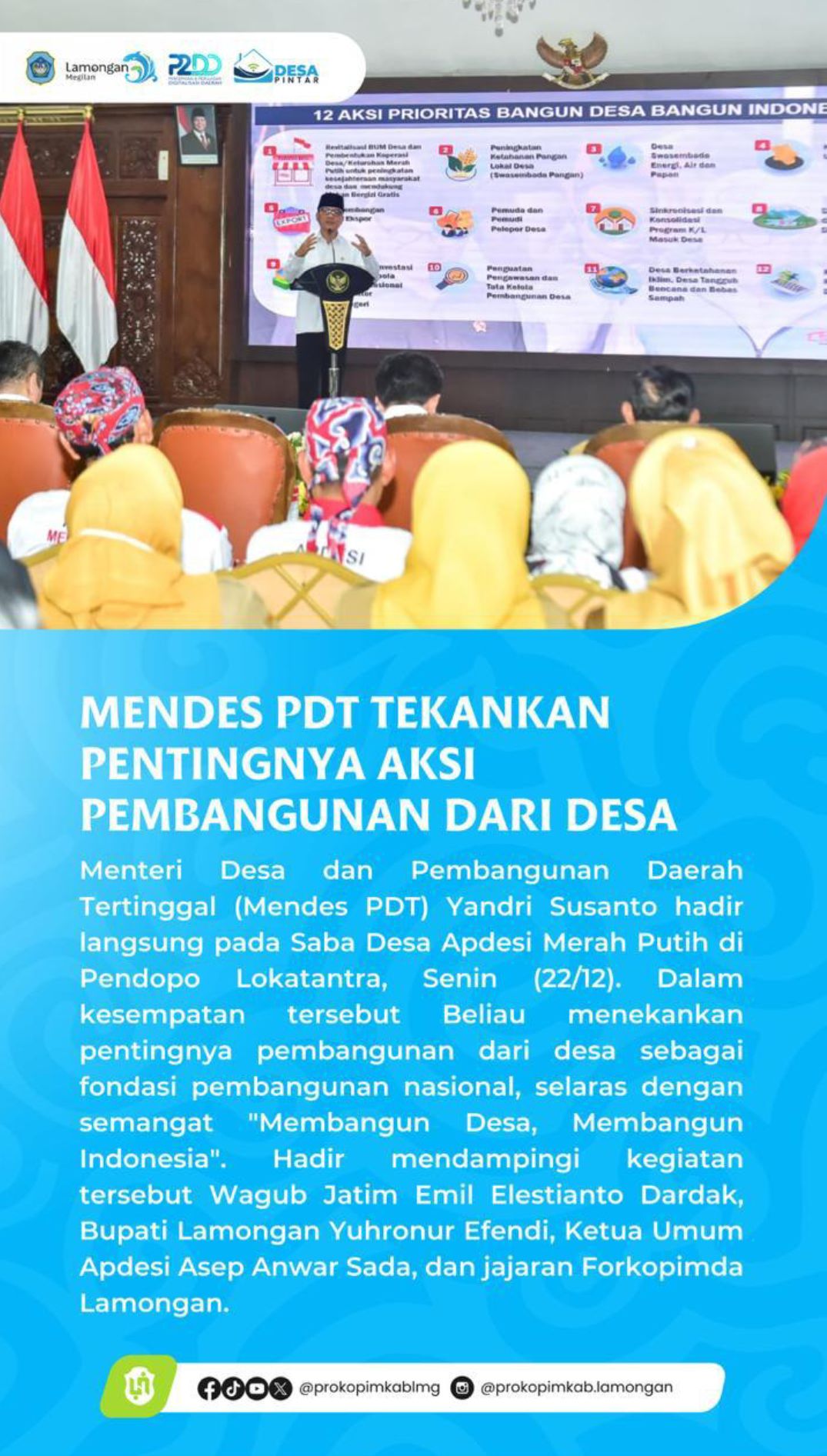 MENDES PDT TEKANKAN PENTINGNYA AKSI PEMBANGUNAN DARI DESA