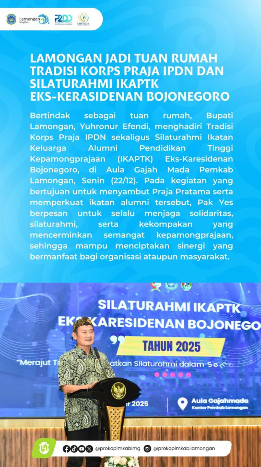 LAMONGAN JADI TUAN RUMAH TRADISI KORPS PRAJA IPDN DAN SILATURAHMI IKAPTK EKS KARISEDENAN BOJONEGORO