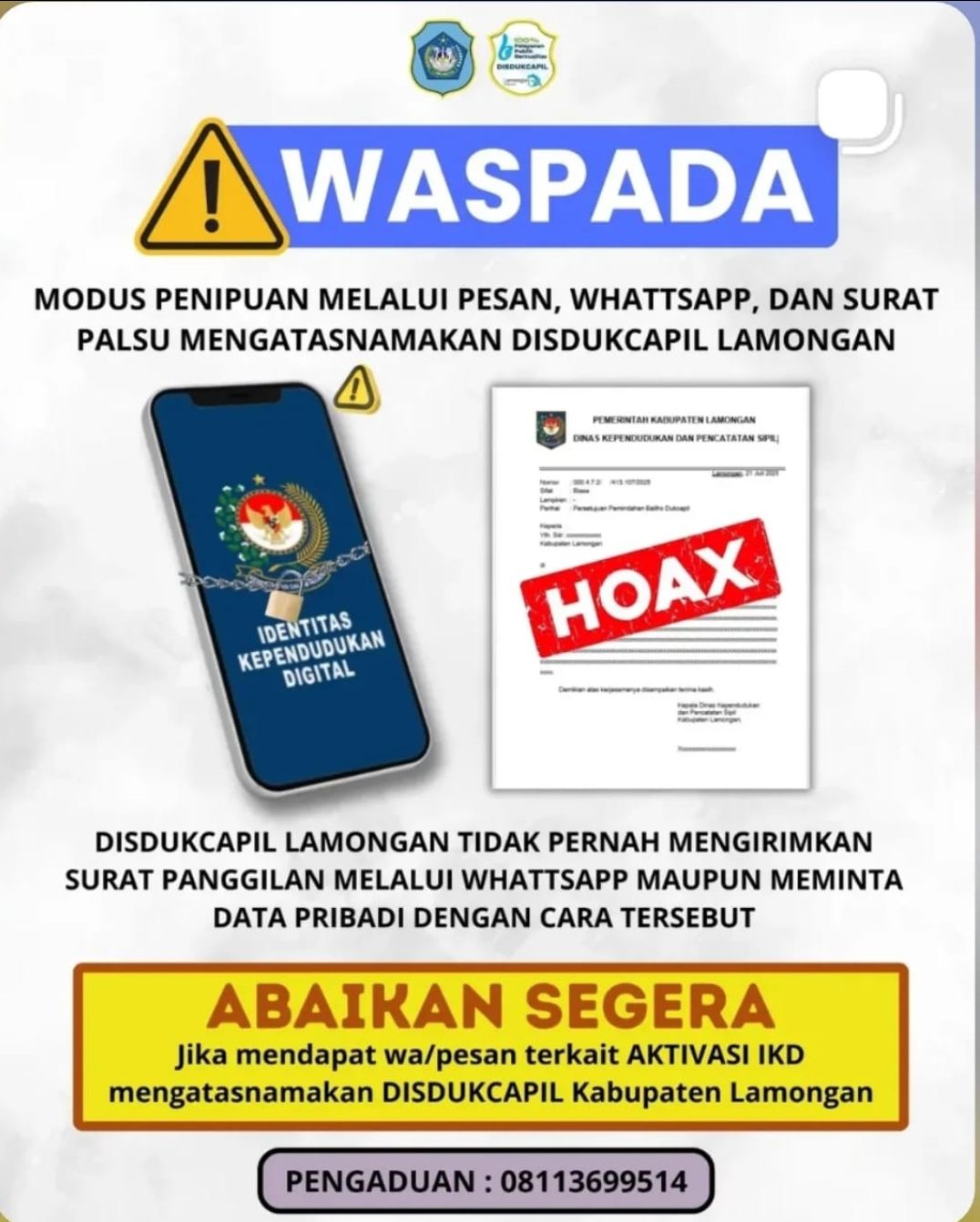 AWAS PENIPUAN MENGATASNAMAKAN DISDUKCAPIL LAMONGAN