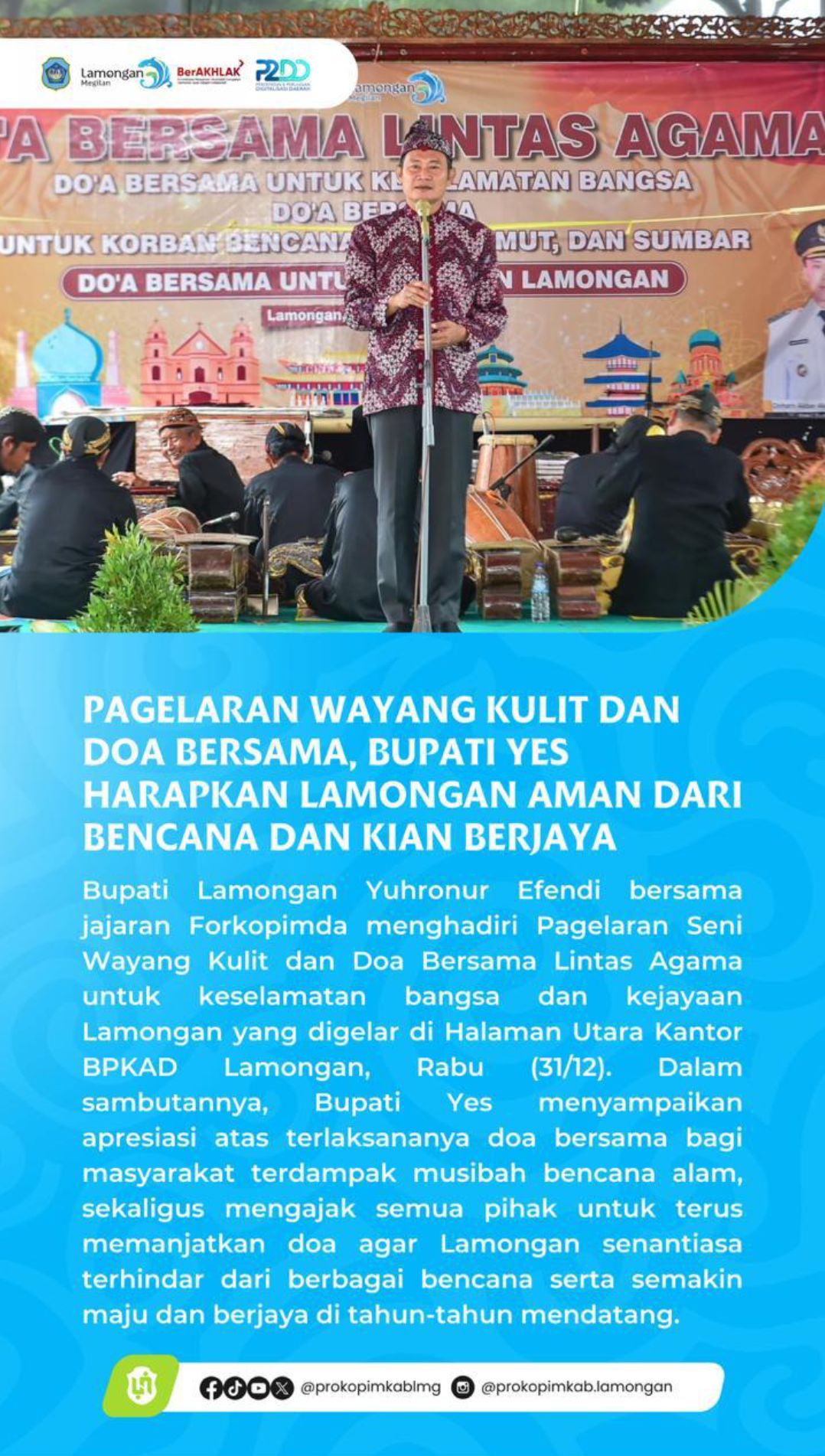 PAGELARAN WAYANG KULIT DAN DOA BERSAMA, BUPATI YES HARAPKAN LAMONGAN AMAN DARI BENCANA DAN KIAN BERJAYA
