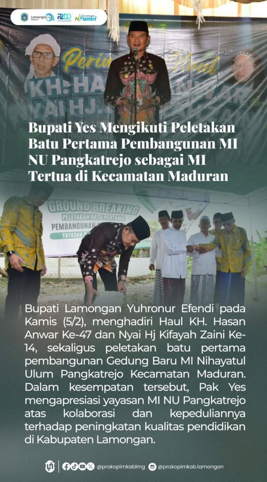 BUPATI MENGIKUTI PELETAKAN BATU PERTAMA MI NU PANGKATREJO