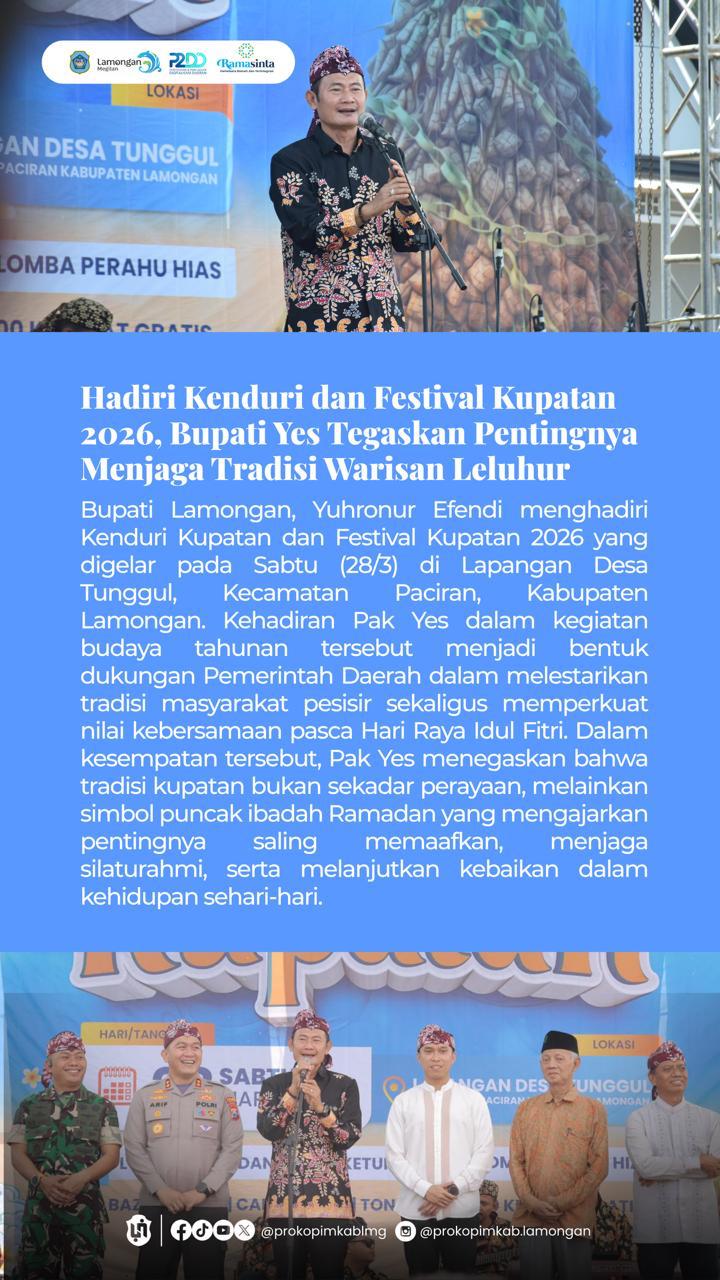 Hadiri Kenduri dan Festival Kupatan 2026, Bupati Yes Tegaskan Pentingnya Menjaga Tradisi Warisan Leluhur